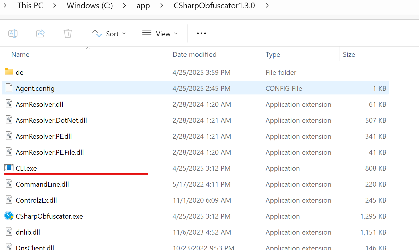 Find the CLI tool CLI.exe in the software installation directory. For example: C:\app\CSharpObfuscator1.3.0\CLI.exe.